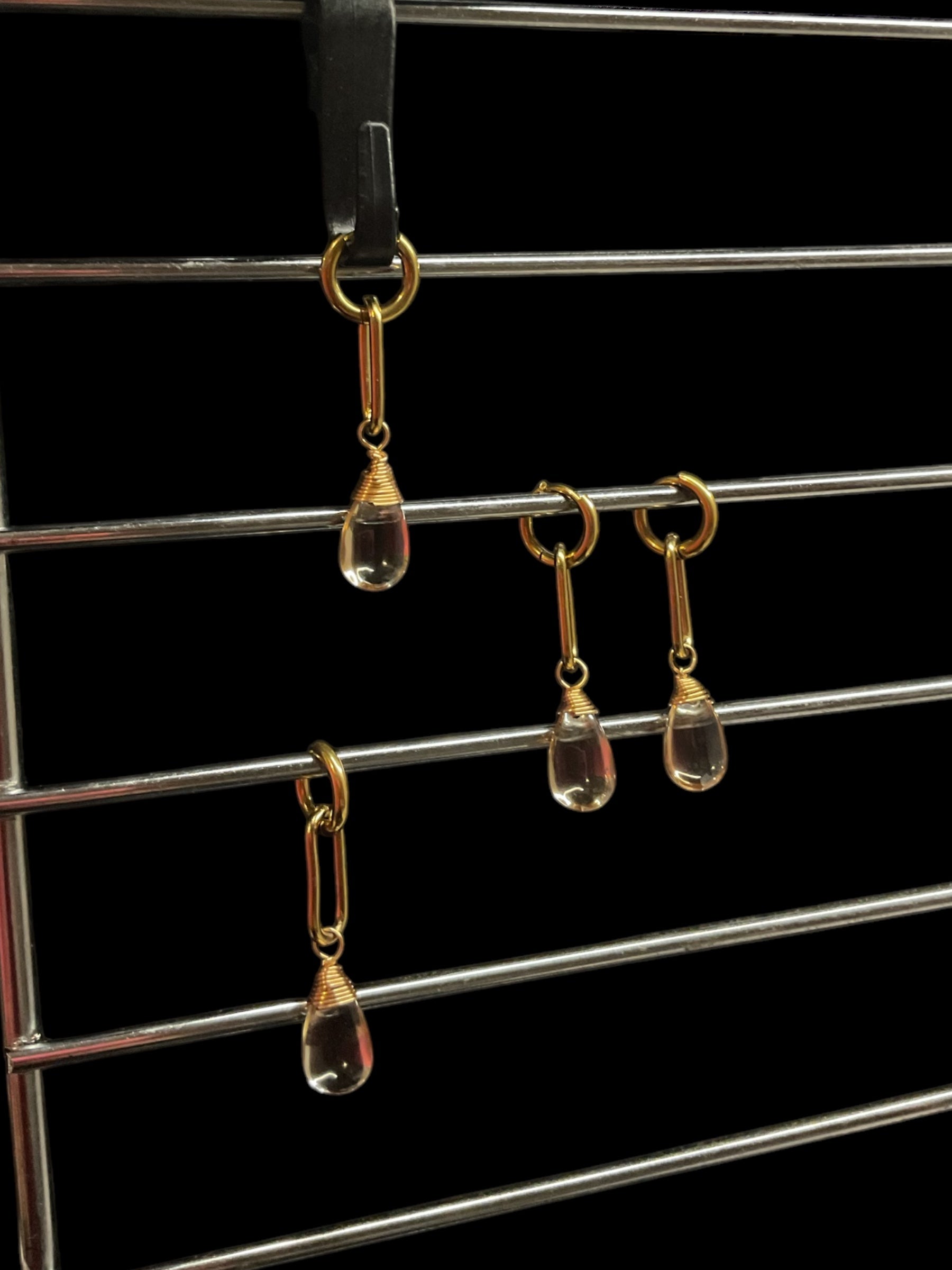 - Matériaux : Acier inoxydable plaqué or, Fil doré, Pendentif goutte translucide