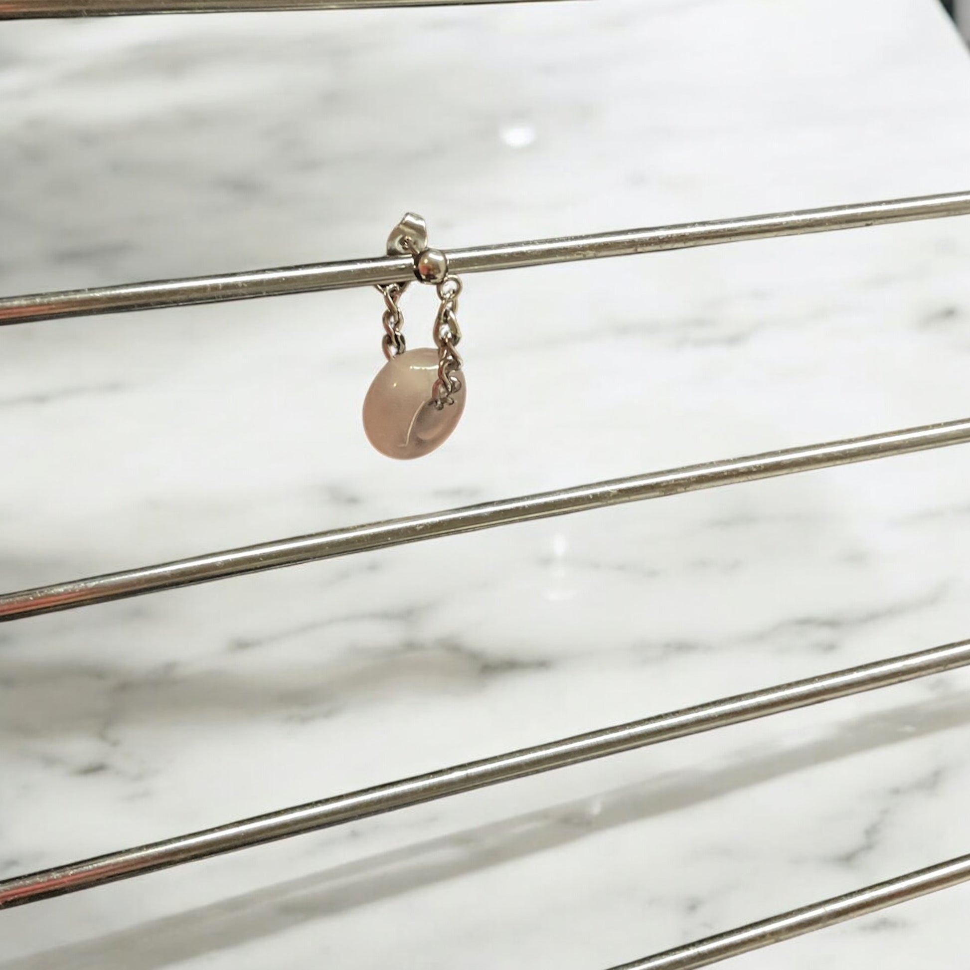 L'amour est une énergie, et cette pièce la porte sans effort. La boucle d'oreille Soulmate Spell est dotée d'une pierre de quartz rose douce mais puissante, suspendue entre de délicates chaînes en acier inoxydable. Le quartz rose est la pierre de l'amour inconditionnel, de l'amour de soi, de l'amour platonique, de l'amour romantique, de tout cela. Un rappel que ce qui est destiné à toi trouvera toujours son chemin. Fait une fois, plus jamais.