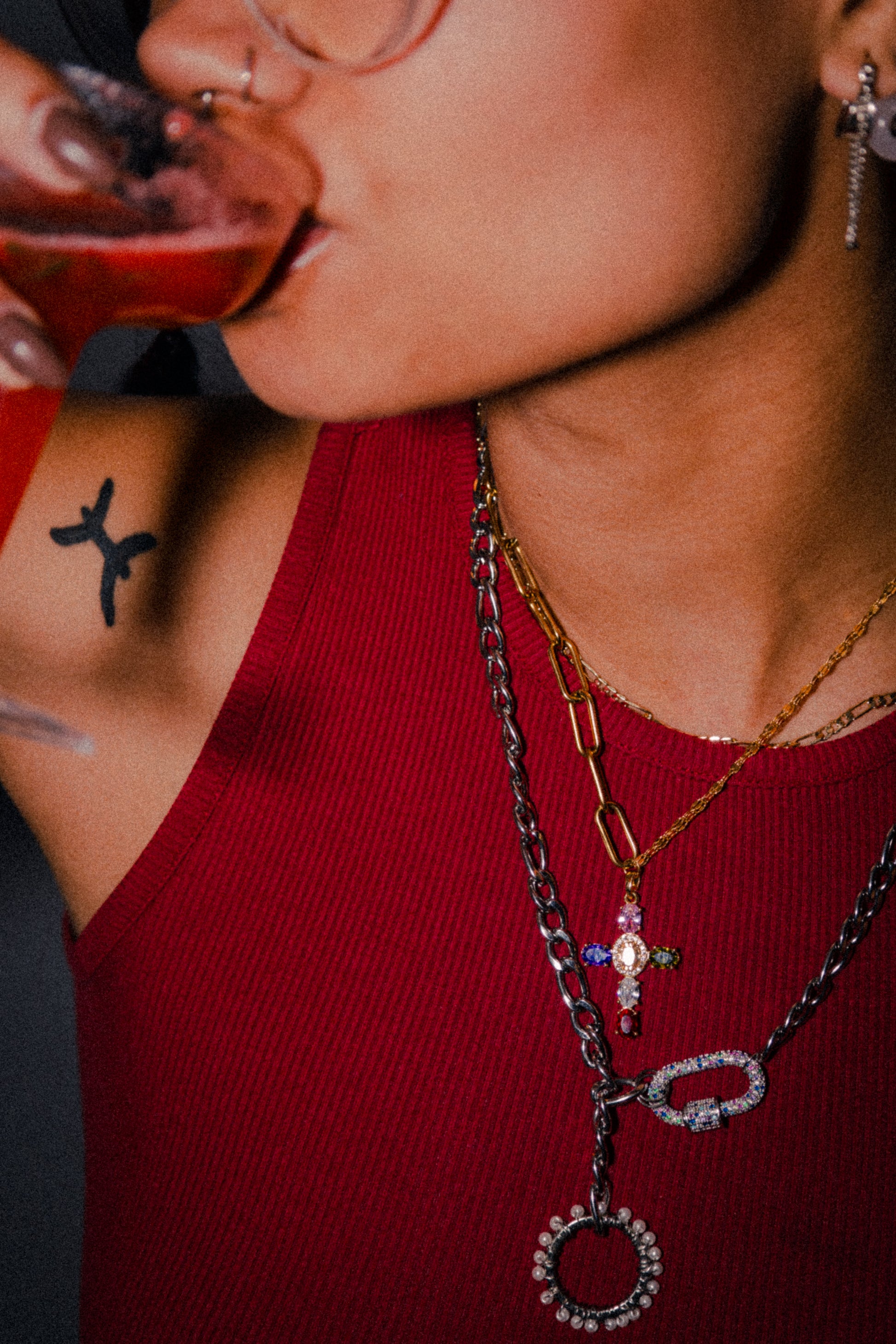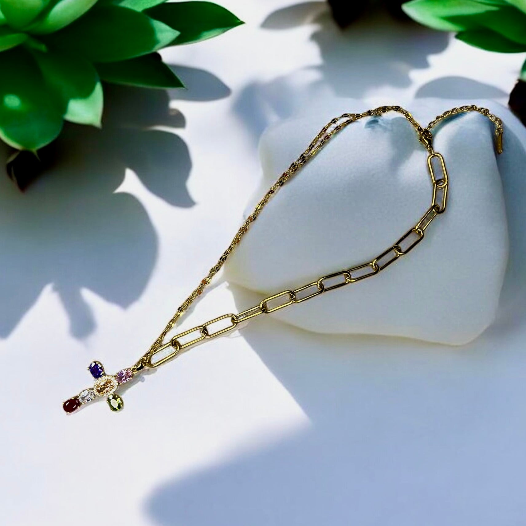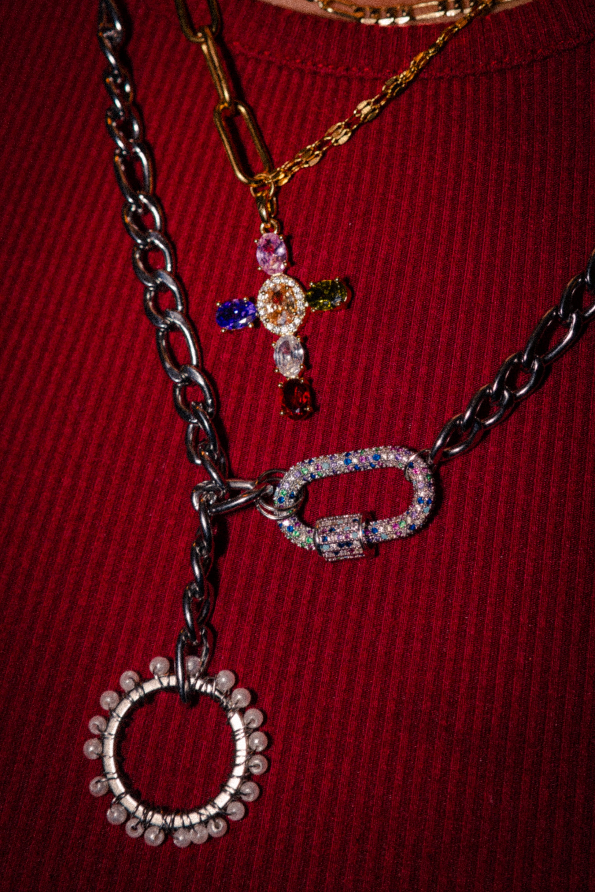 The September 6th necklace is a fresh spin on a timeless classic. Its gold-tone chain holds a crystal-studded cross pendant that feels equal parts bold and understated. Perfect for layering or standing solo, it transforms any outfit.