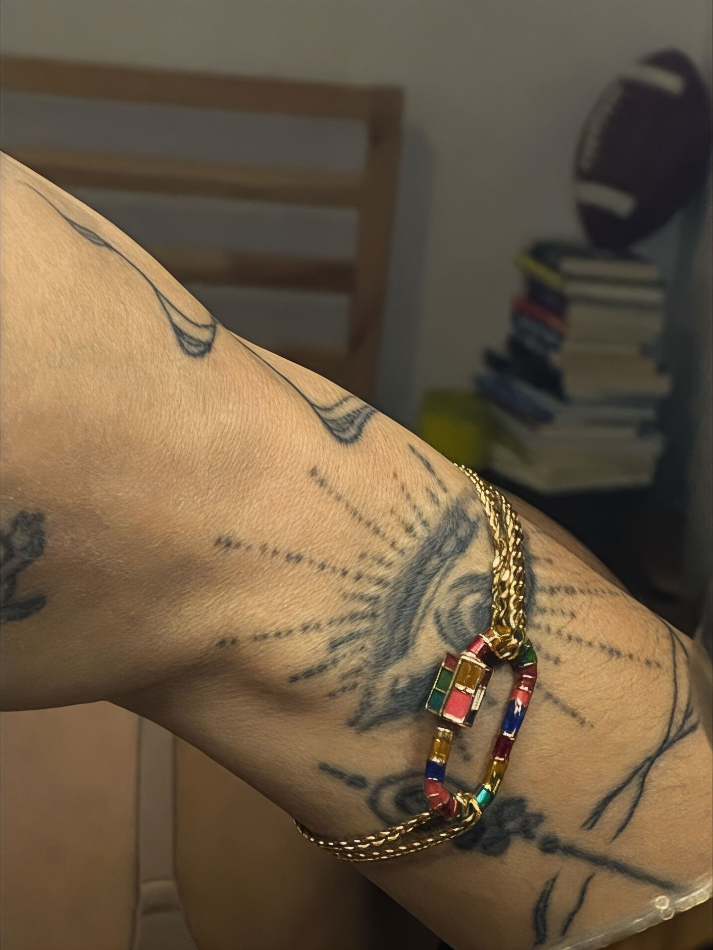 Not just another bracelet—The Duke moves different. A gold-plated stainless steel chain locked in with a carabiner wrapped in vibrant enamel, giving off that perfect mix of grit and play. It’s got weight, but never drags. Stack it, wear it solo, make it yours. Either way, it won’t go unnoticed.